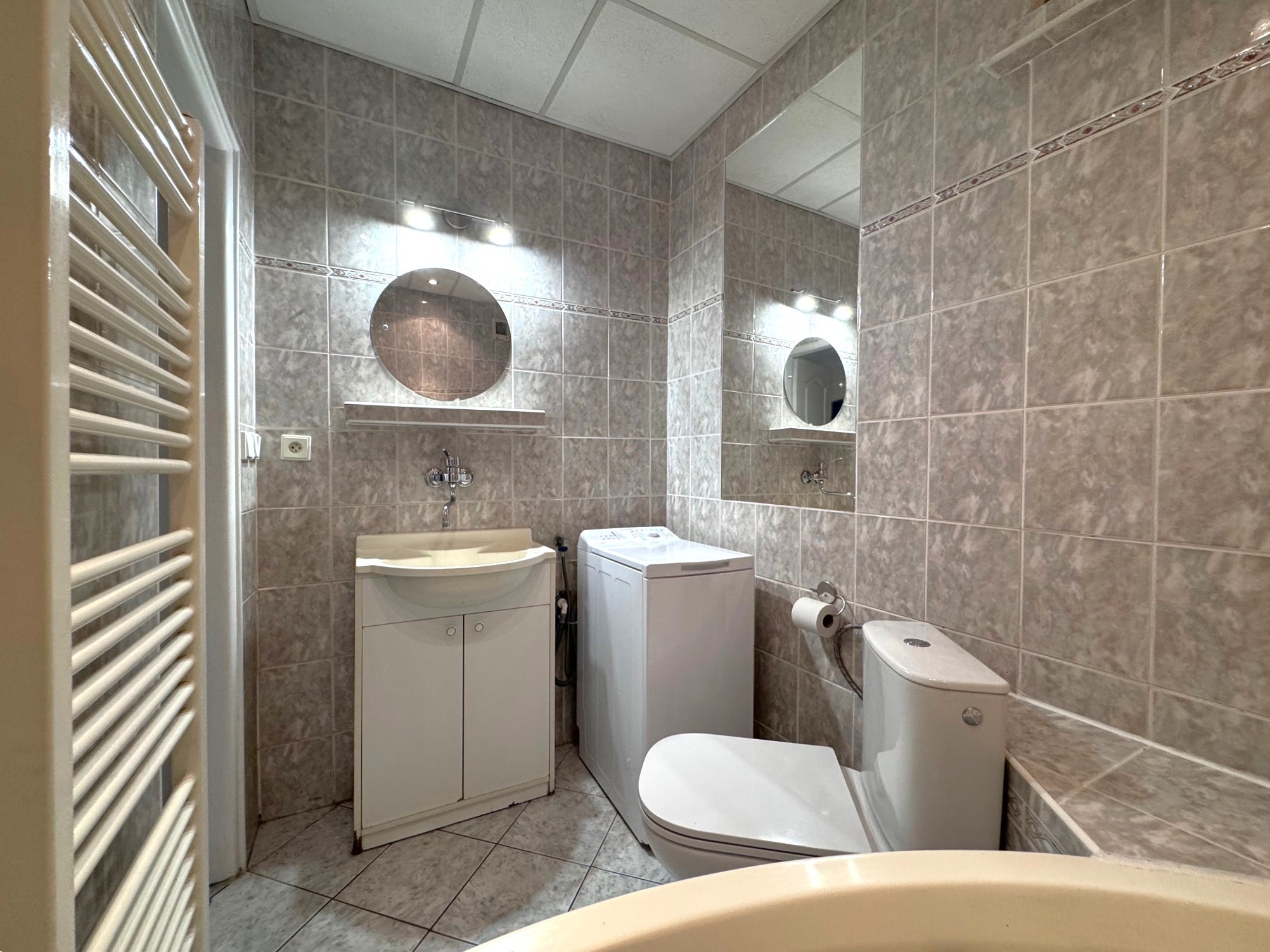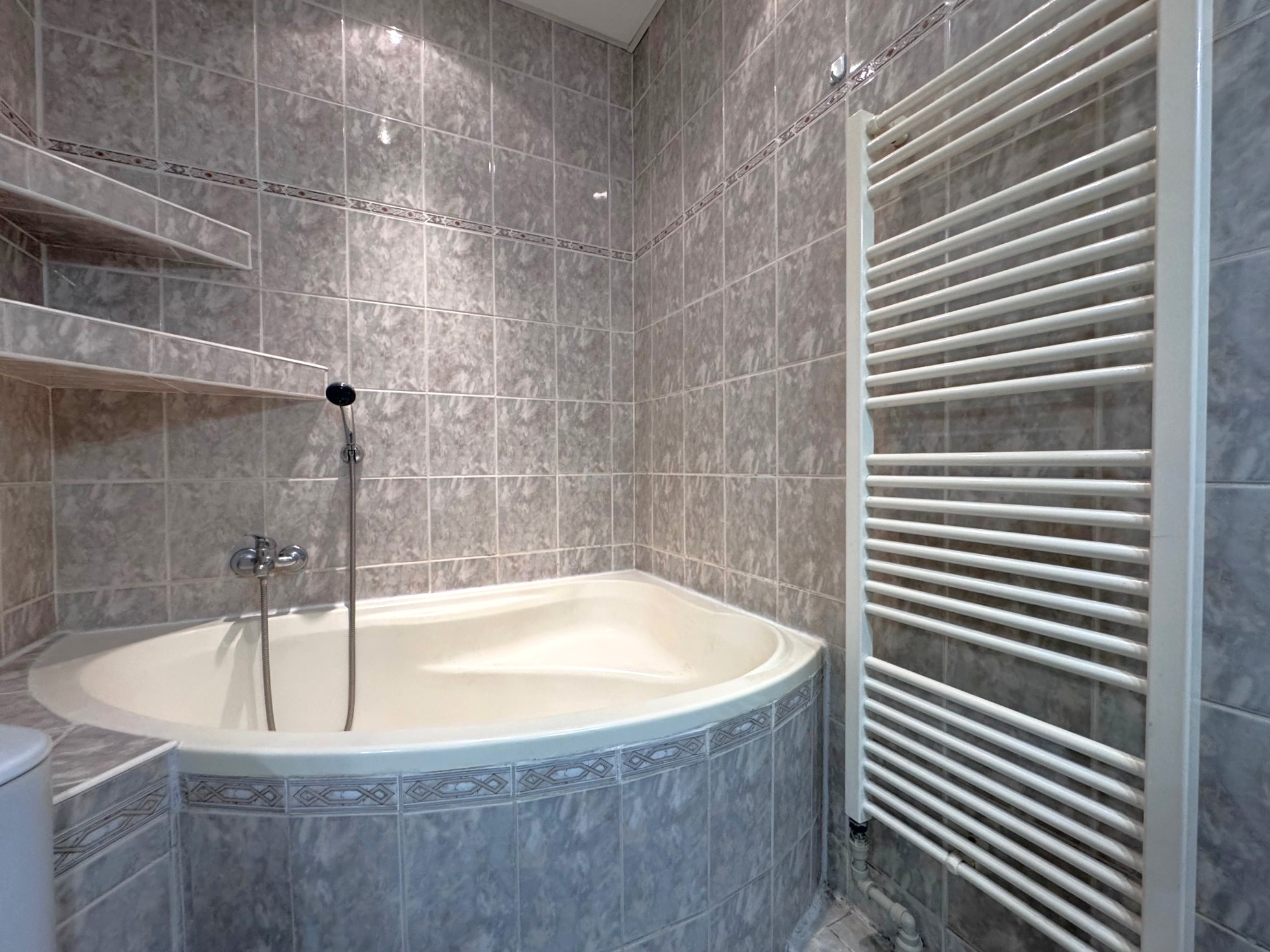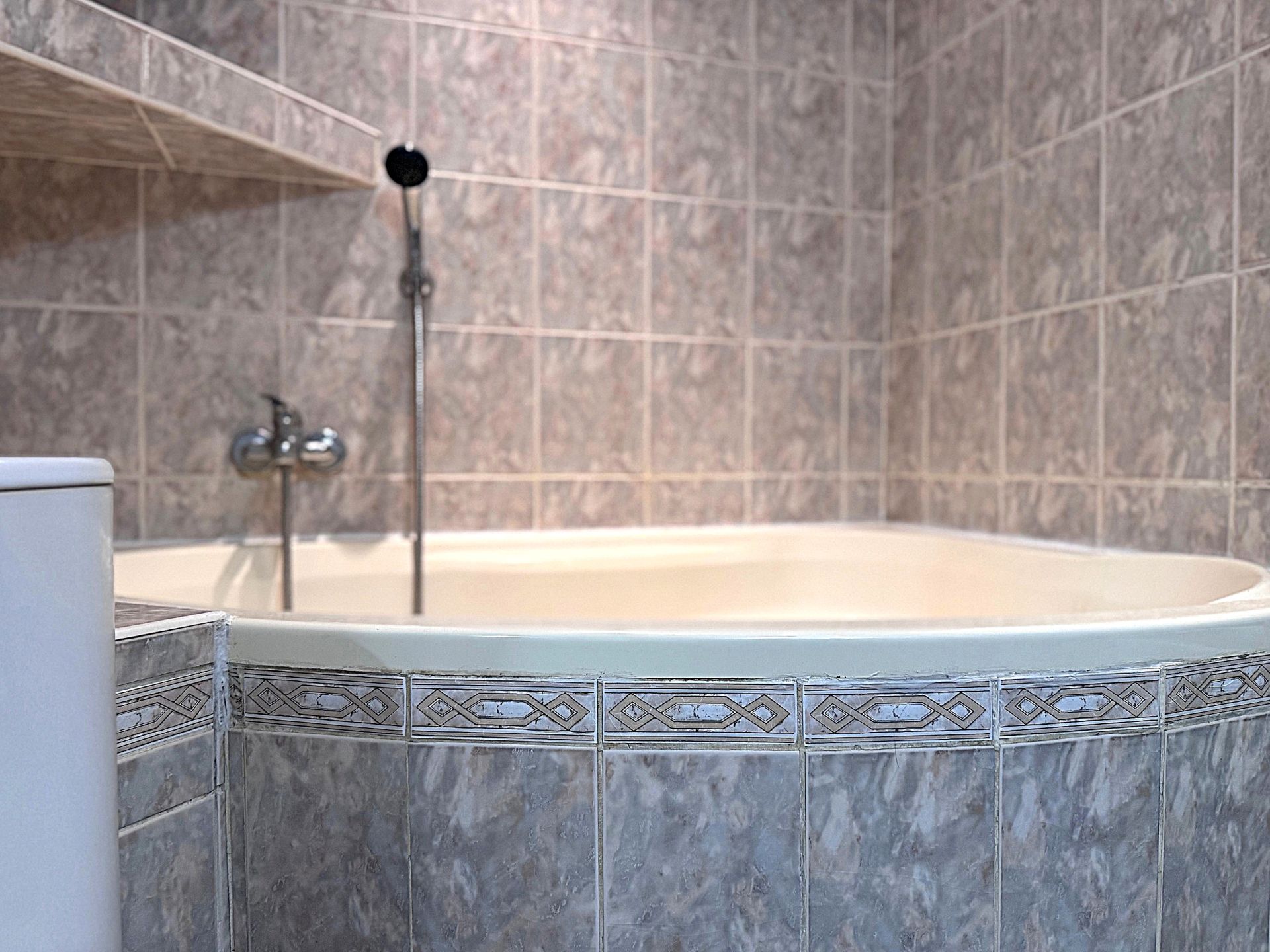 V kúpeľni sa nachádza vaňa s novou sanitou a keramickým obkladom, súčasťou vybavenia je aj práčka.