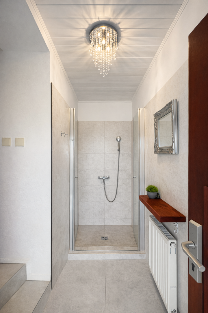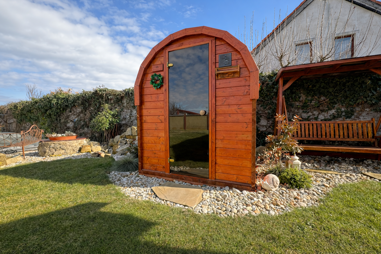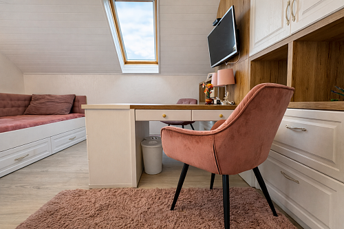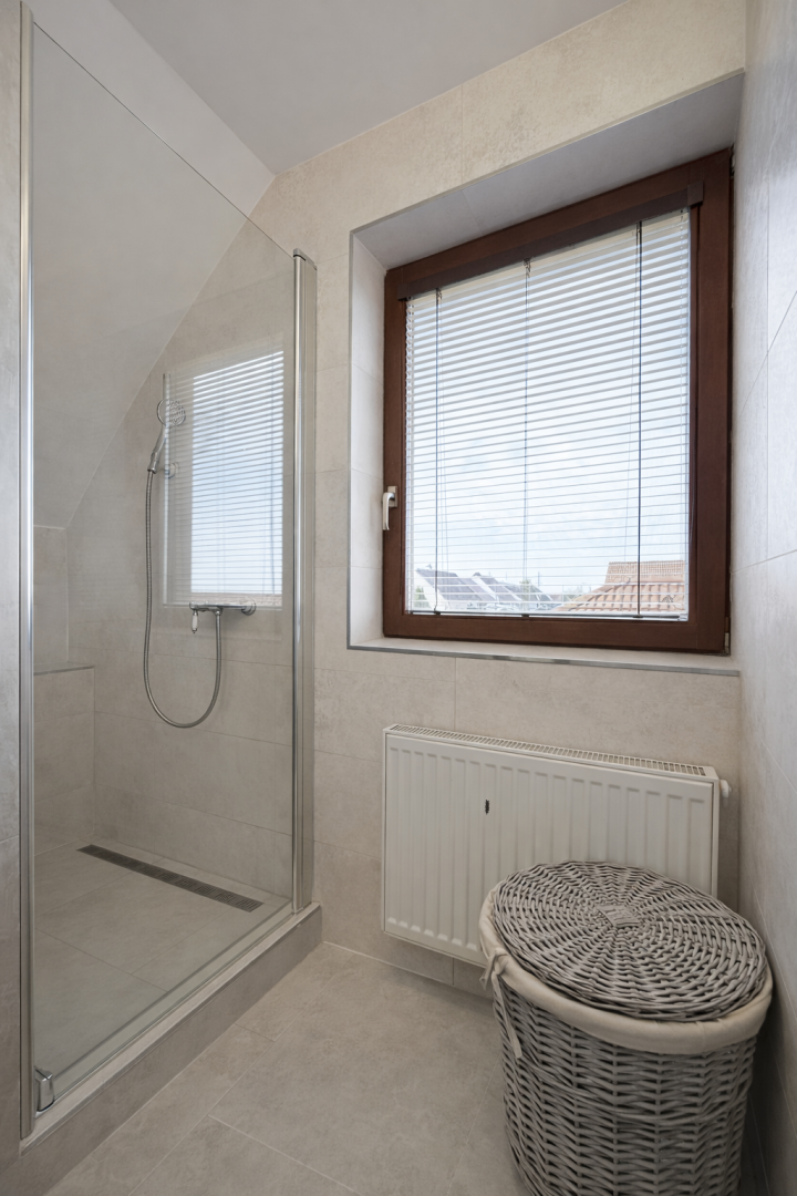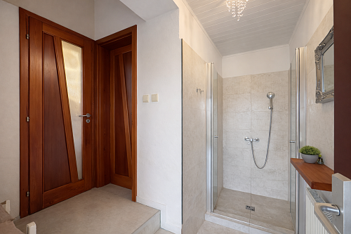 Praktickým benefitom je samostatná hosťovská izba s vlastným vstupom z dvora, ktorá ponúka široké možnosti využitia – pre návštevy, podnikanie či pokojné pracovné zázemie. Sprcha pri vstupe z dvora je ideálne prepojená so saunou na pozemku, čo vytvára premyslený relaxačný koncept.