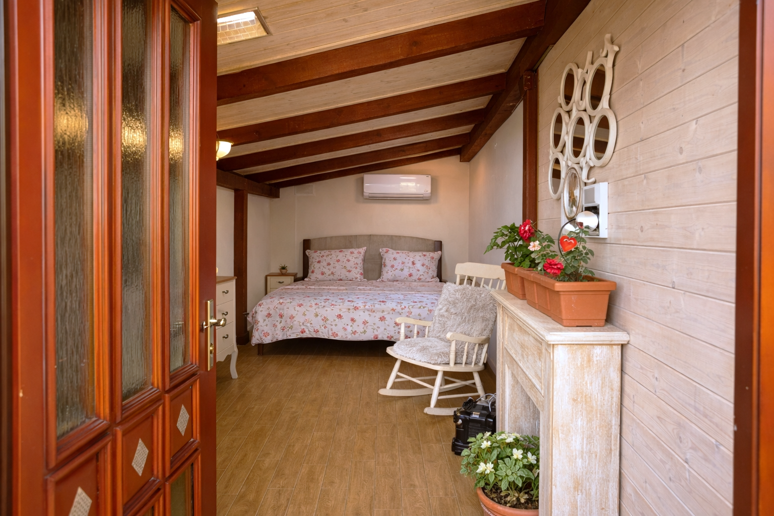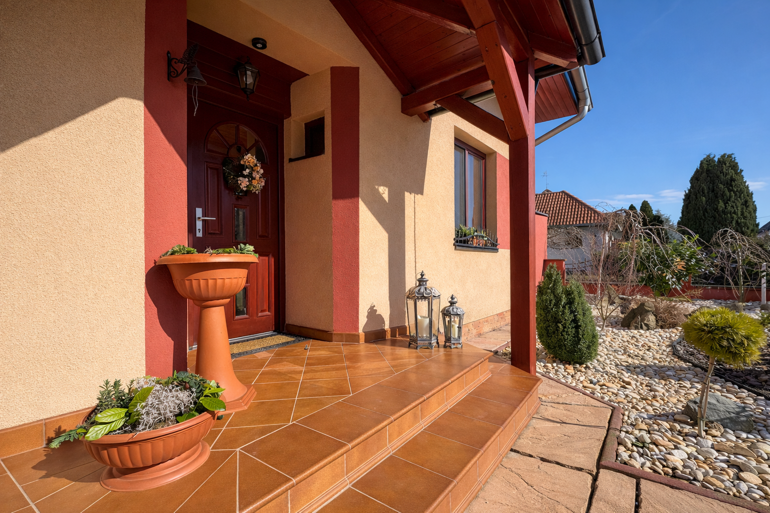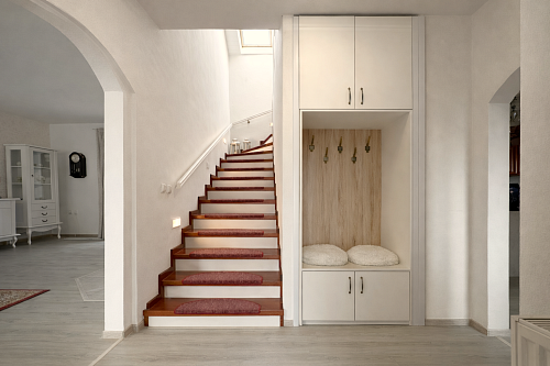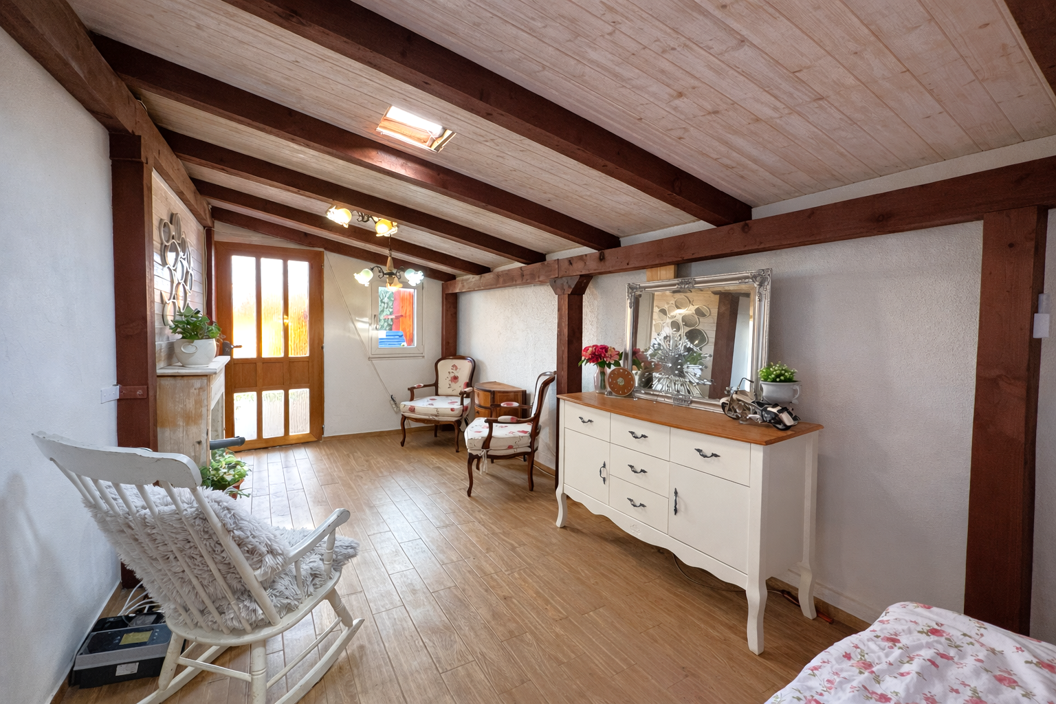 Praktickým benefitom je samostatná hosťovská izba s vlastným vstupom z dvora, ktorá ponúka široké možnosti využitia – pre návštevy, podnikanie či pokojné pracovné zázemie. Sprcha pri vstupe z dvora je ideálne prepojená so saunou na pozemku, čo vytvára premyslený relaxačný koncept.