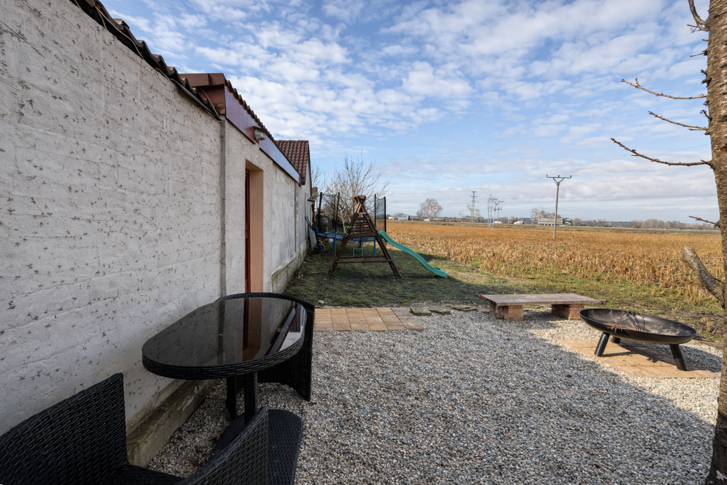 Parkovanie je nadštandardné, jedno vozidlo v garáži, dve za bránou z boku domu a minimálne dve pred domom mimo cesty. Majitelia navyše využívajú aj pozemok za dvorom približne 110 m², kde majú deti priestor na hry, trampolínu a rodinné grilovanie.