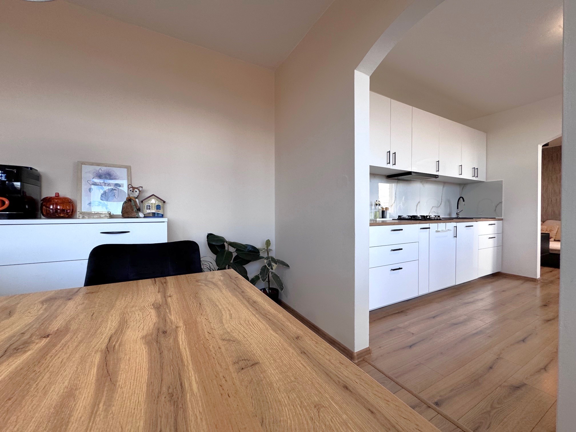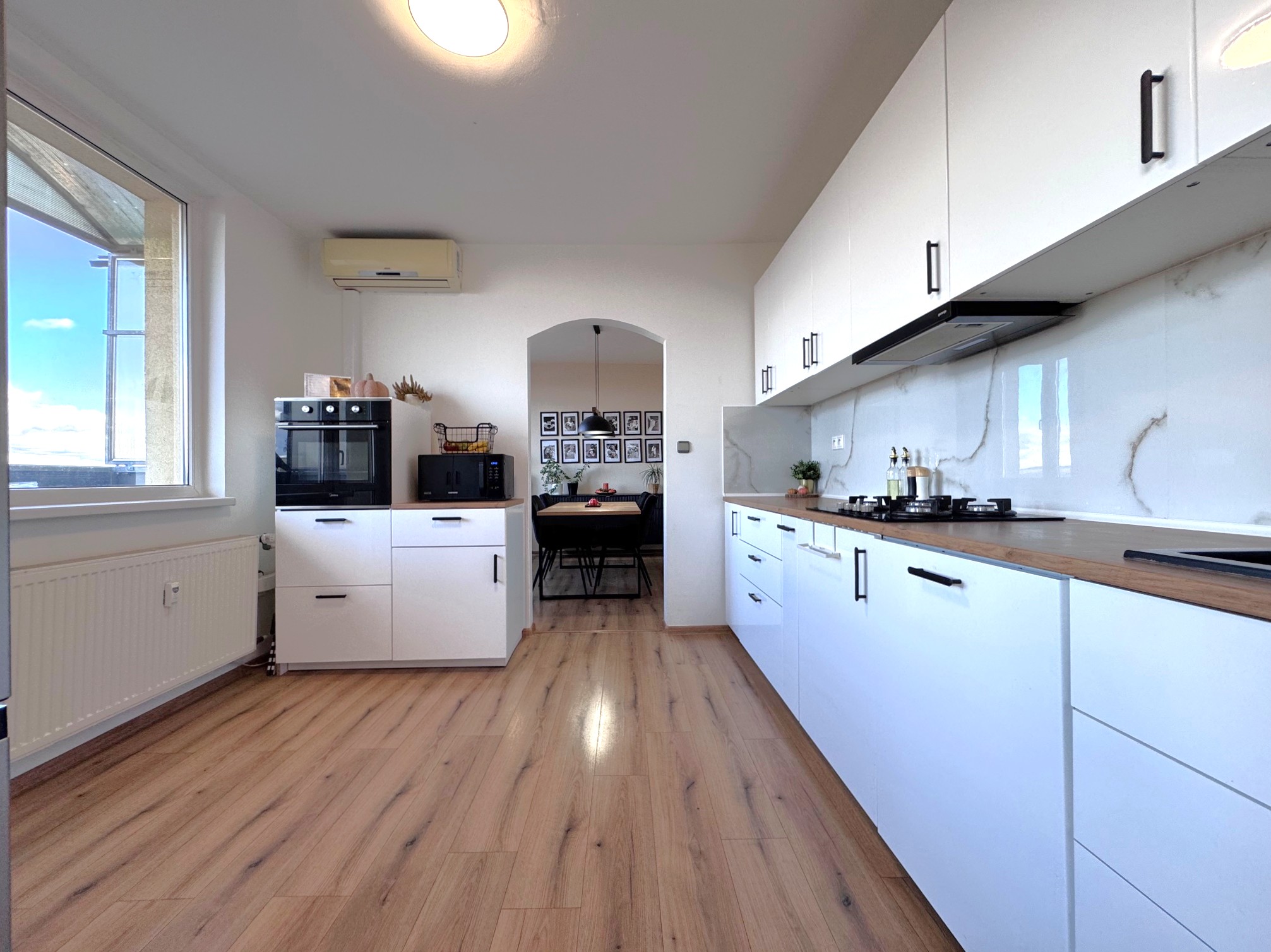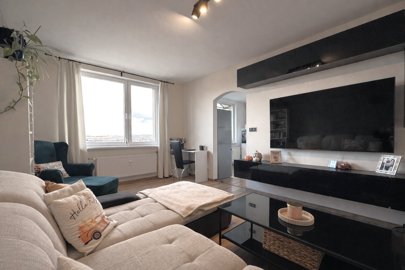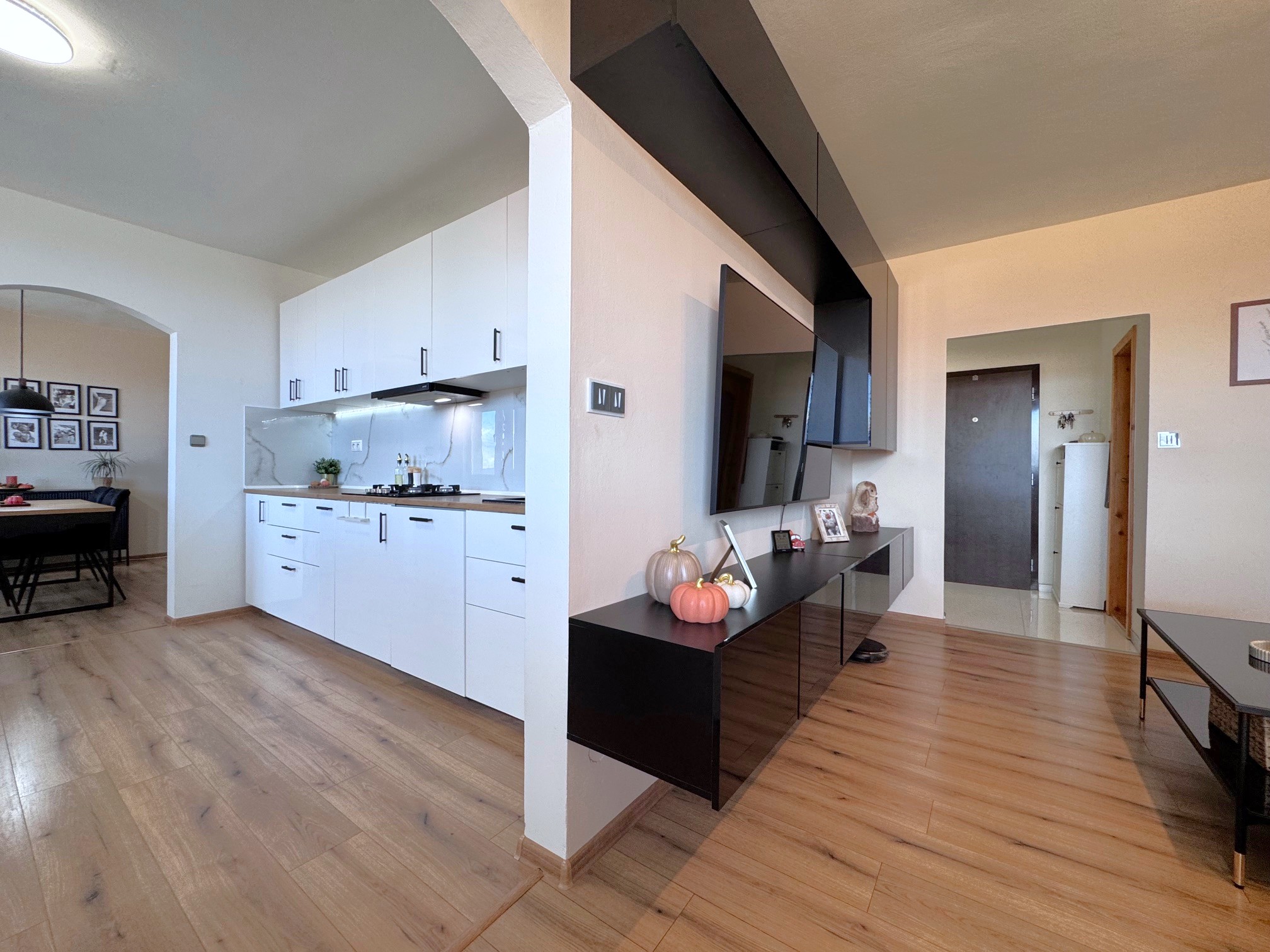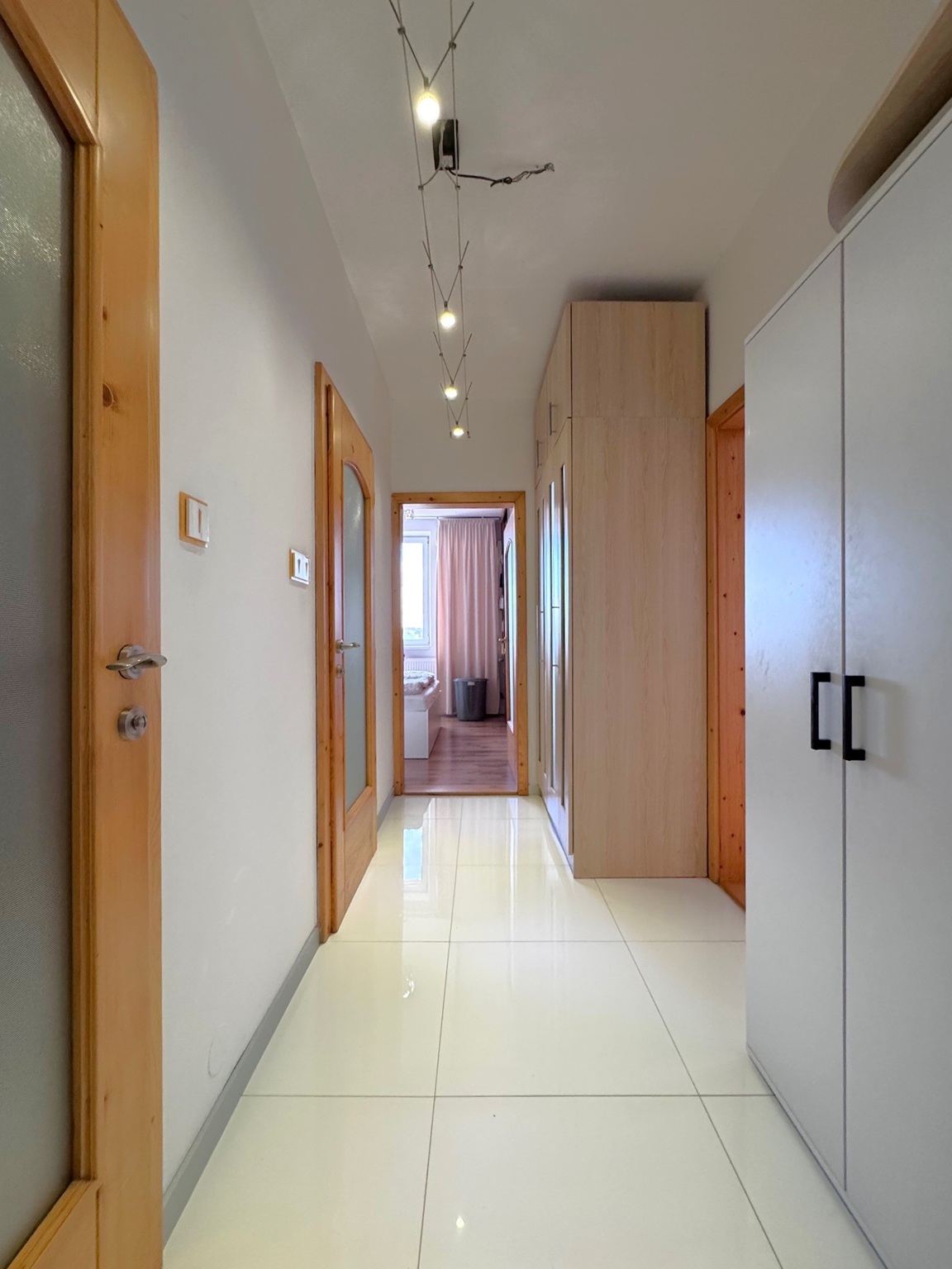 Byt je premyslene riešený pre potreby modernej rodiny: priestranná vstupná chodba so šikovnou komorou, kuchyňa s východom na balkón s krásnym výhľadom, svetlá obývačka ako srdce domova, tri samostatné izby, pričom jedna v súčasnosti slúži ako jedáleň, kúpeľňa s vaňou aj sprchovým kútom, samostatné WC.
