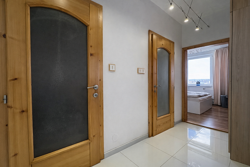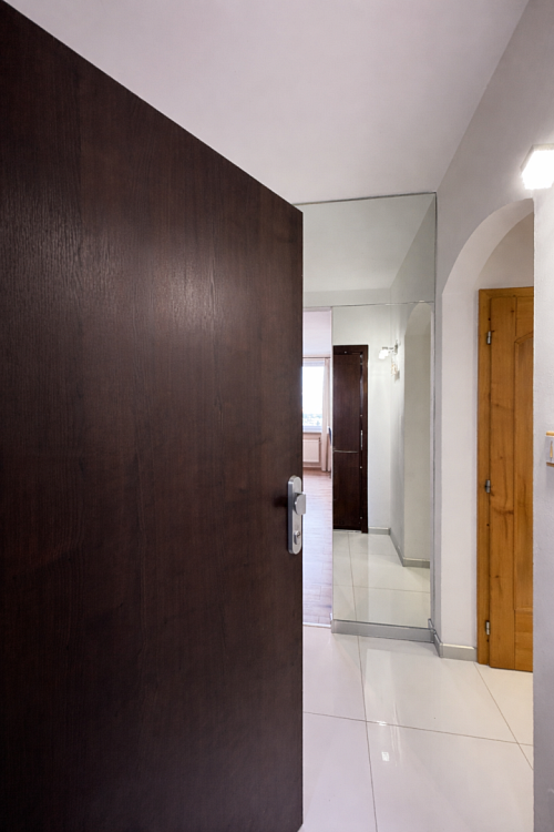 Vstup do bytu zabezpečujú bezpečnostné dvere, v interiéri boli použité kvalitné materiály a moderné dizajnové prvky, ktoré vytvárajú harmonický a príjemný domov.