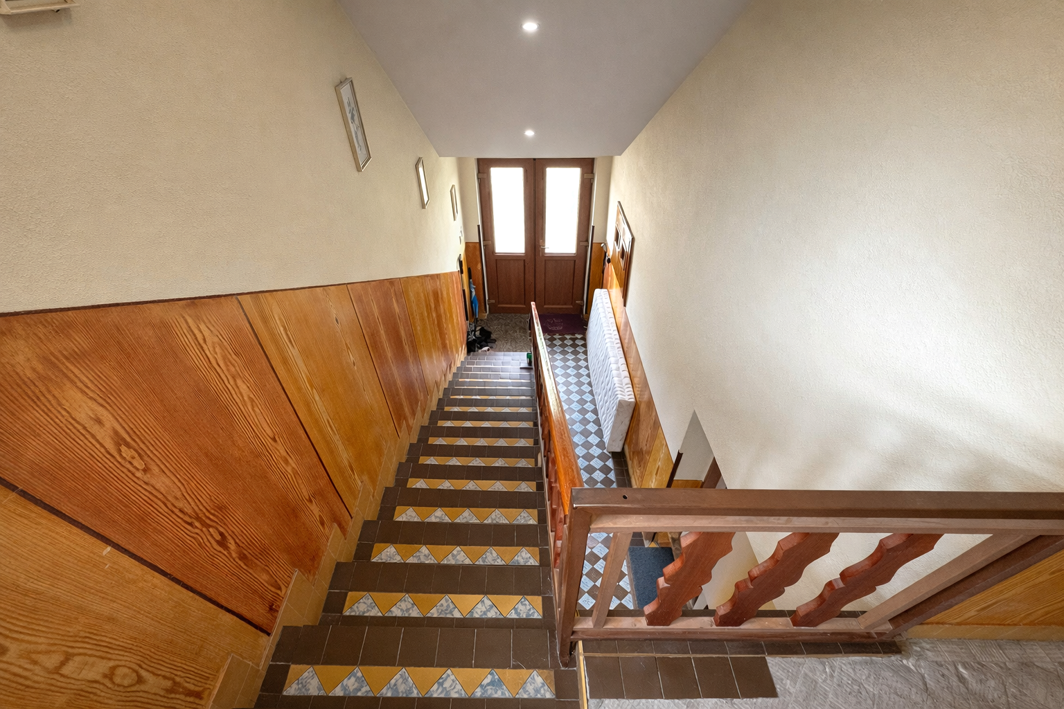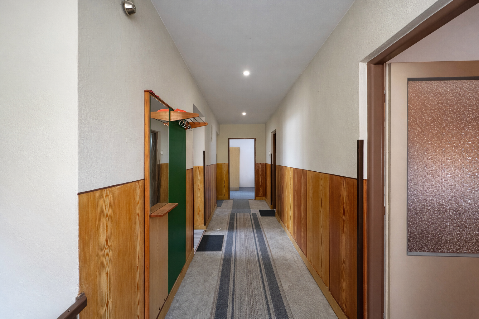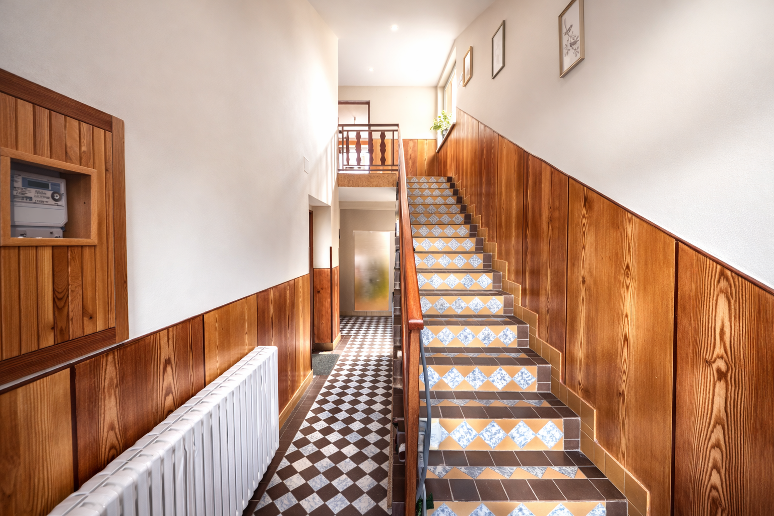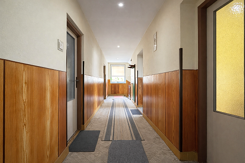 Na poschodí sú ďalšie priestory, vrátane chodby, dvoch izieb s výstupom na spoločný balkón orientovaný na ulicu, jednej izby s loggiou do dvora, kuchyne s komorou a kúpeľne s WC.