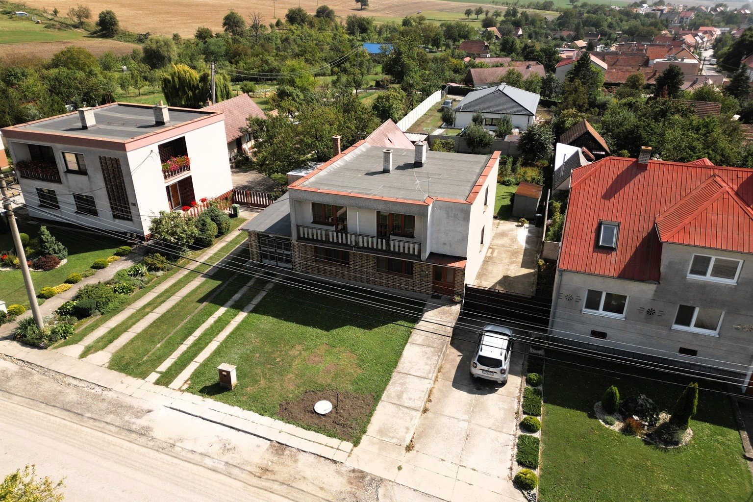 Tento dvojgeneračný dom s piatimi izbami a dvoma kuchyňami ponúka dostatok priestoru pre rodiny s viacerými generáciami. Je vybavený plastovými oknami, kúrenie je zabezpečené plynovým kotlom plus lokálne krbom, dom je taktiež napojený na elektrinu, vodu zo studne (kopaná, hĺbka 12,5 m), odpad je riešený septikom s objemom 16 m3, pričom je možné dom napojiť aj na obecný vodovod, prípojka sa nachádza pred domom.