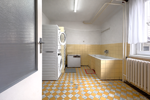 Na prízemí sa nachádza zádverie, chodba, kuchyňa, komora, izba, práčovňa s kúpeľňou a samostatné WC. Z prízemia je tiež prístup do kotolne, z ktorej vedie výstup na dvor.