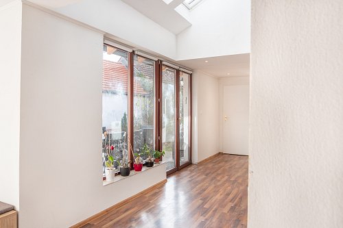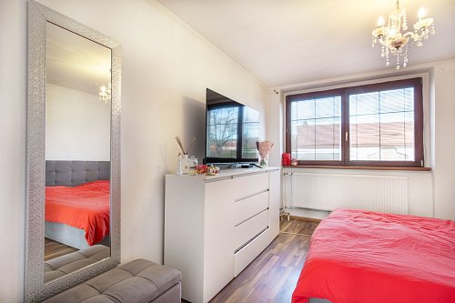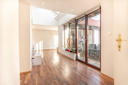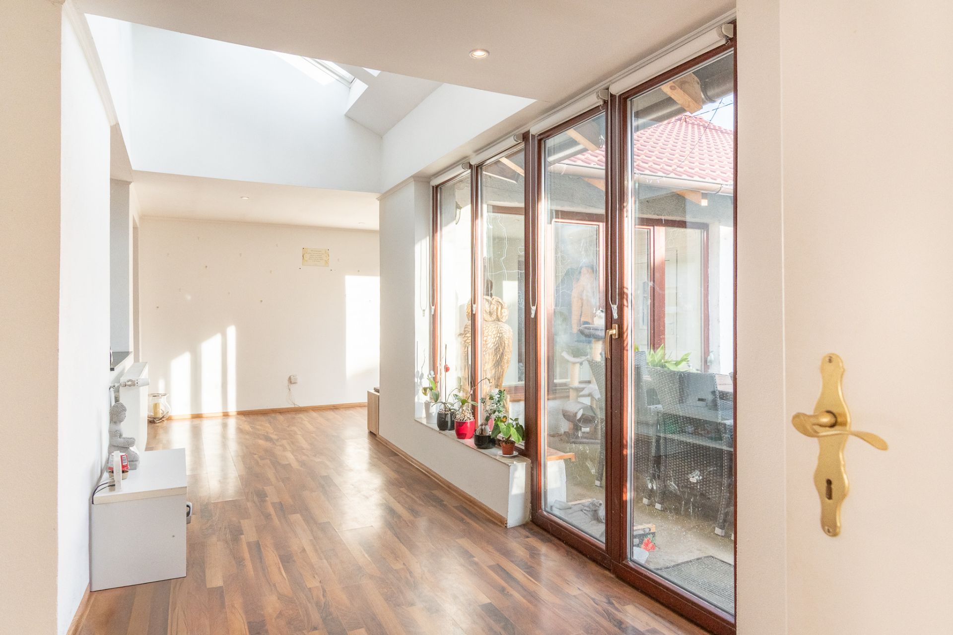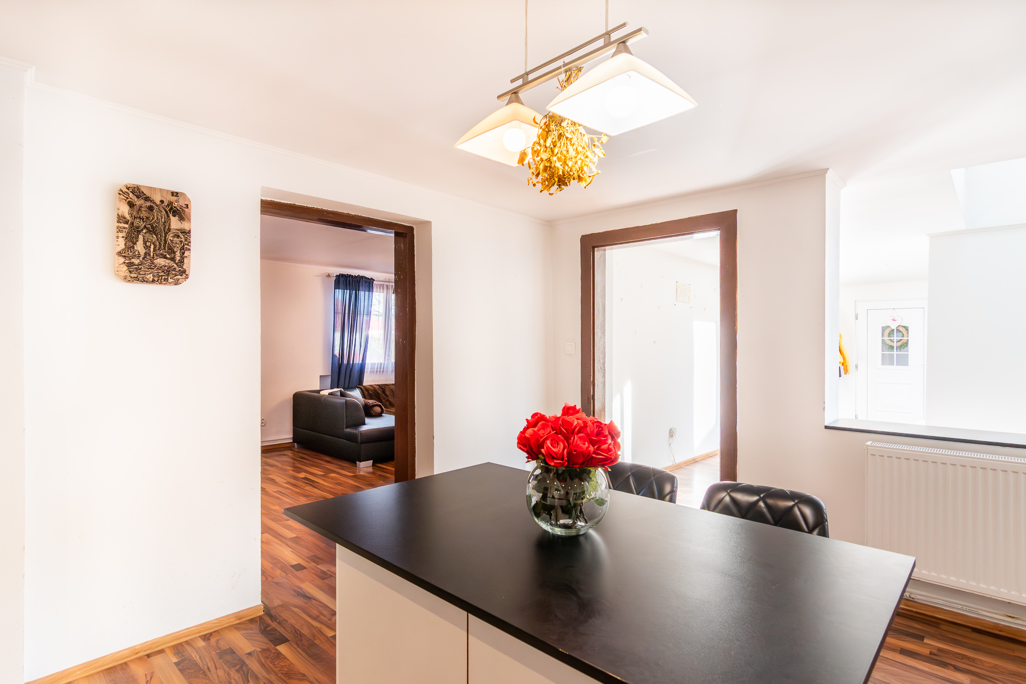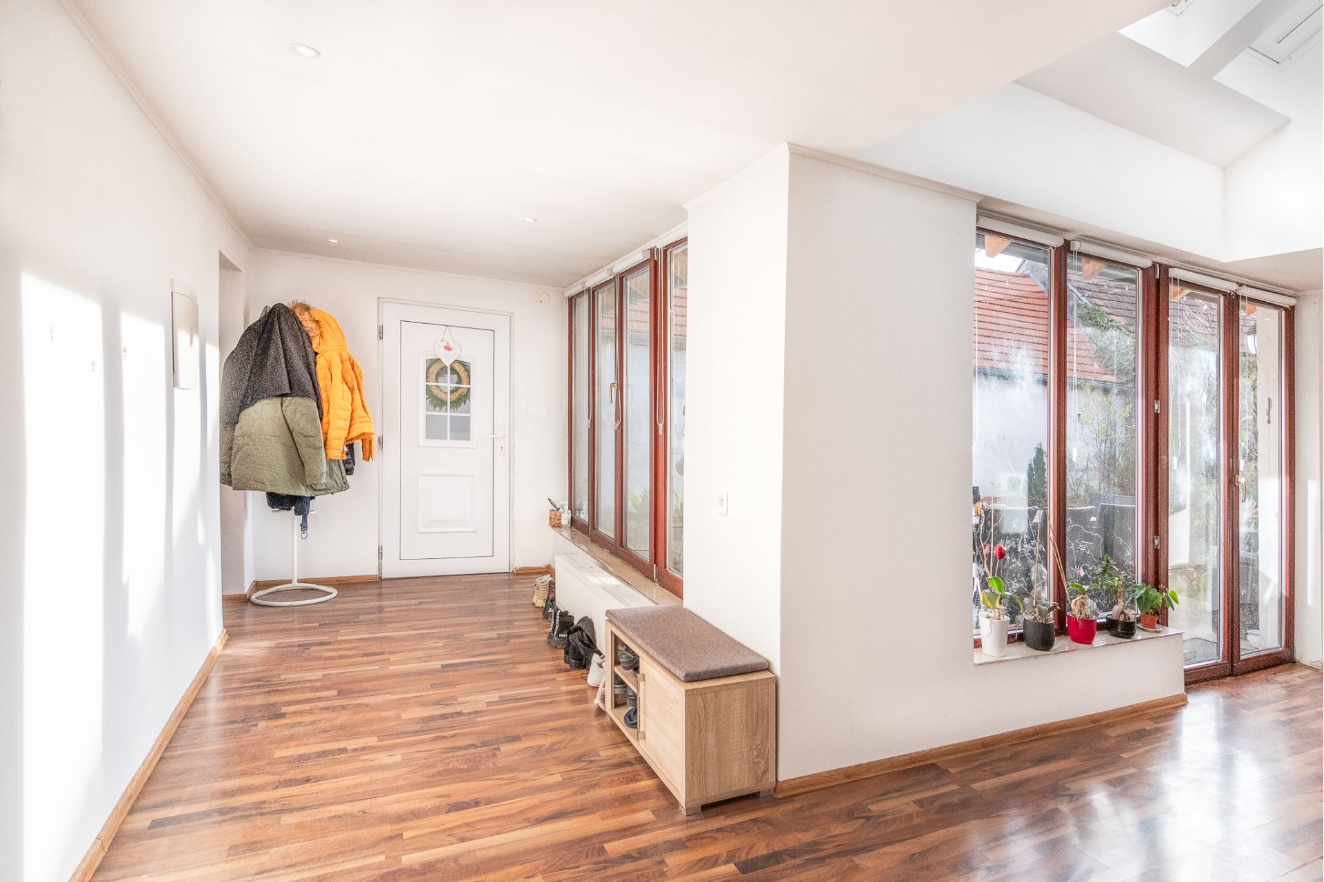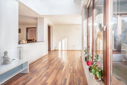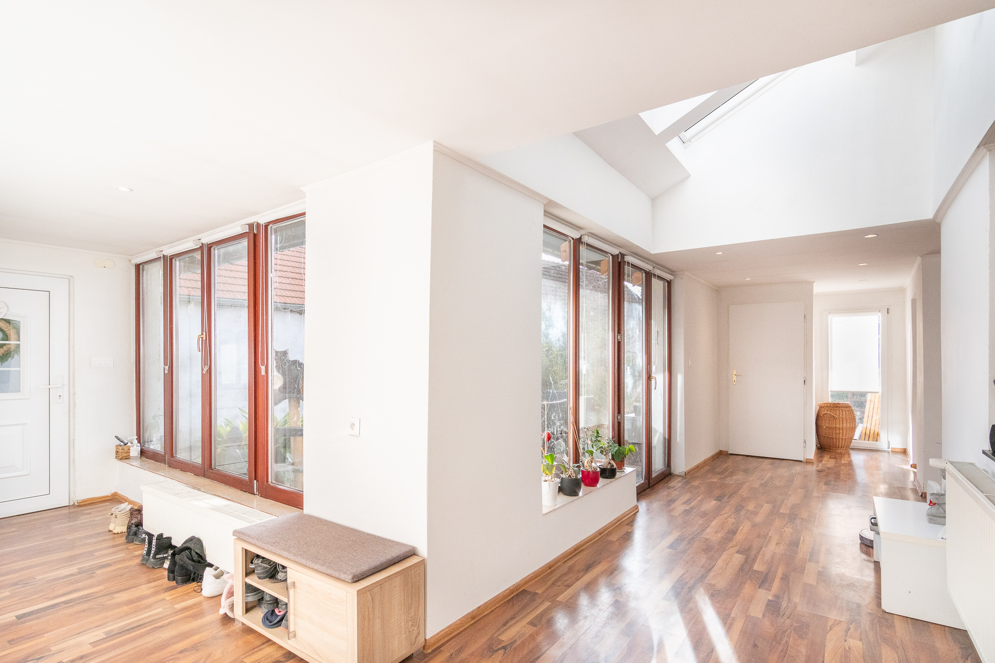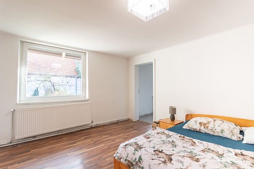 Dom bol daný do užívania v roku 1972 a prešiel rozsiahlejšími úpravami, ktoré ho pripravili na okamžité nasťahovanie. Ponúka veľmi šikovne riešenú dispozíciu: vstup tvorí veľká svetlá chodba presvetlená strešnými oknami, z ktorej je priamy vstup na vonkajšiu terasu s príjemným posedením. Na prízemí sa nachádza priestranný vstupný priestor, izba, kuchyňa s prechodom do obývacej miestnosti, kúpeľňa, samostatný šatník alebo odkladacia miestnosť a dve ďalšie izby orientované smerom do dvora. Hlavné obytné miestnosti sú situované na juhozápad a juhovýchod, čo zabezpečuje dostatok denného svetla počas celého dňa.