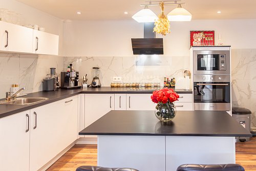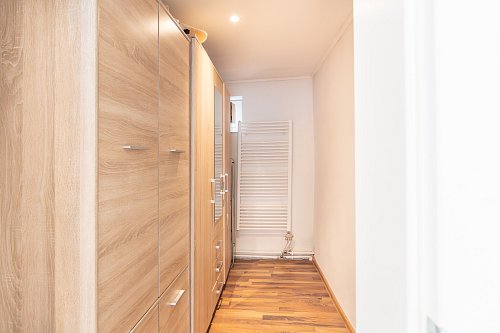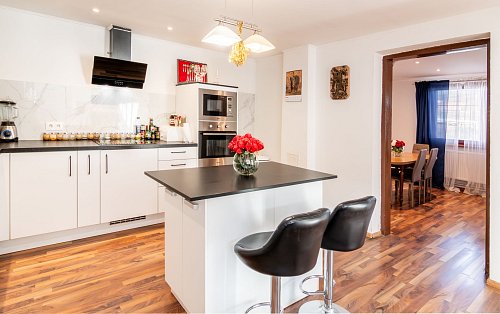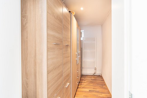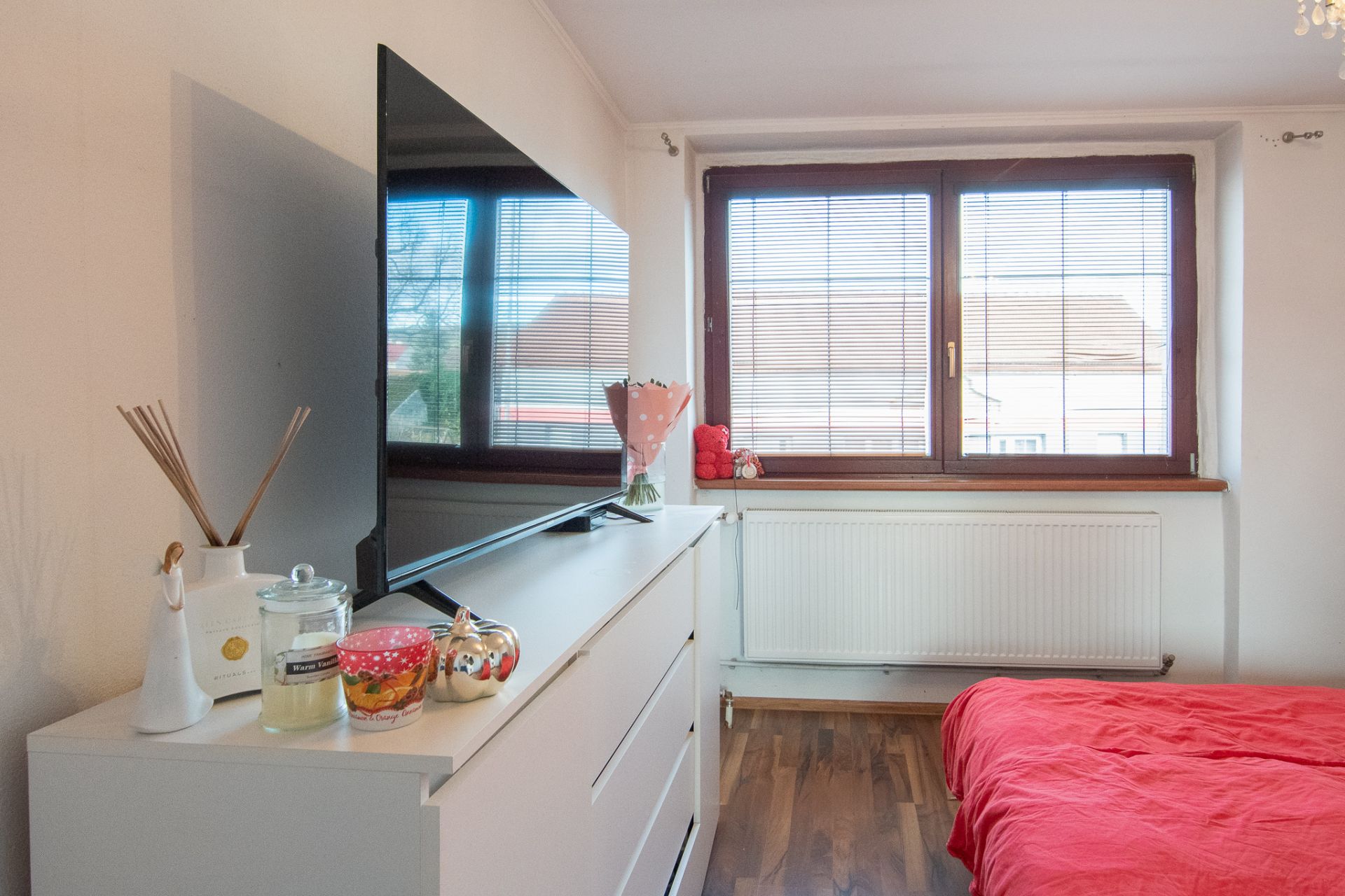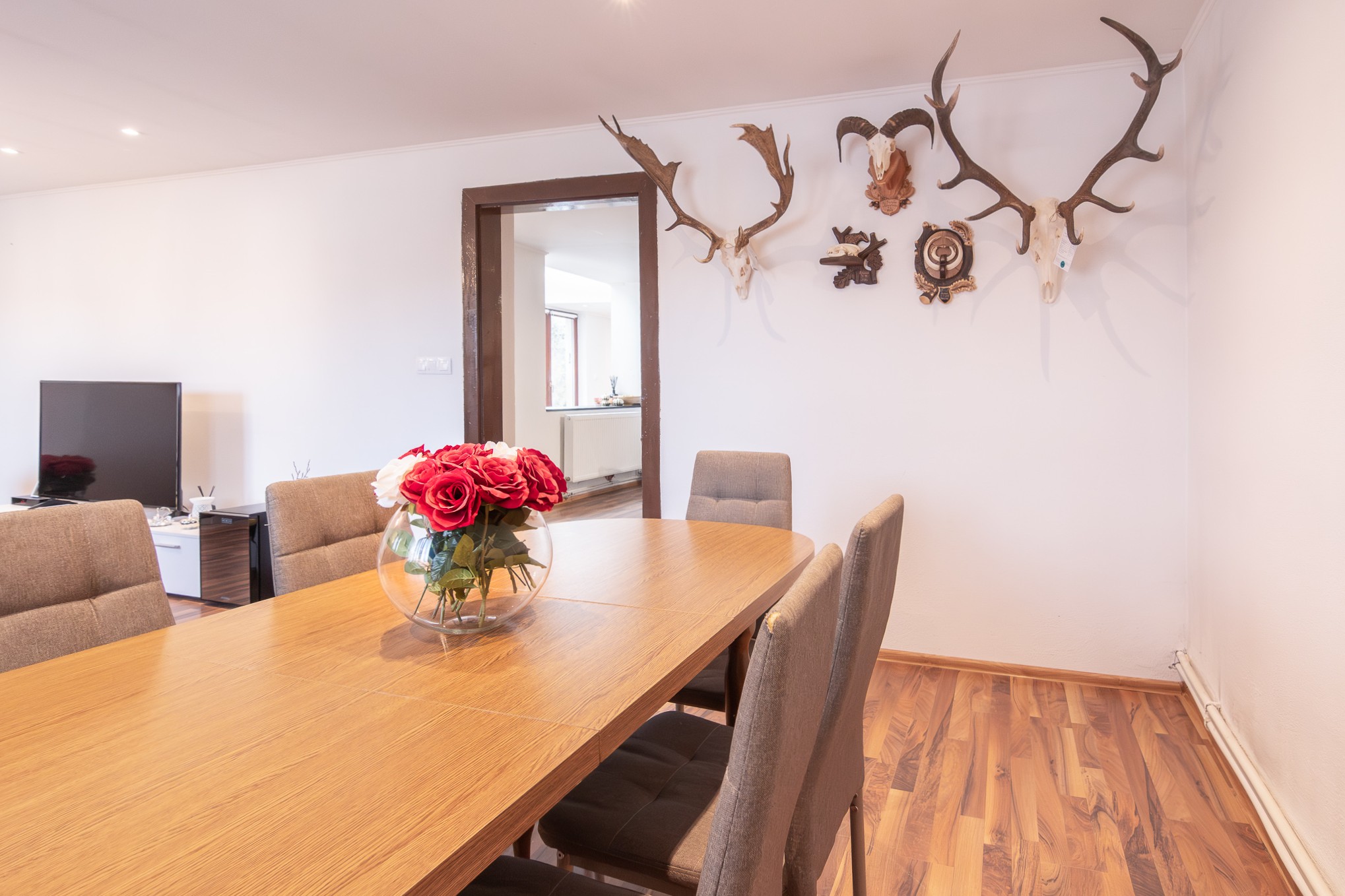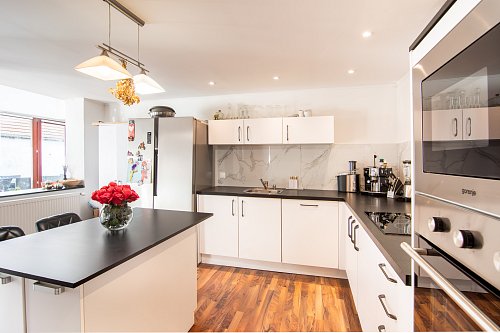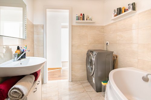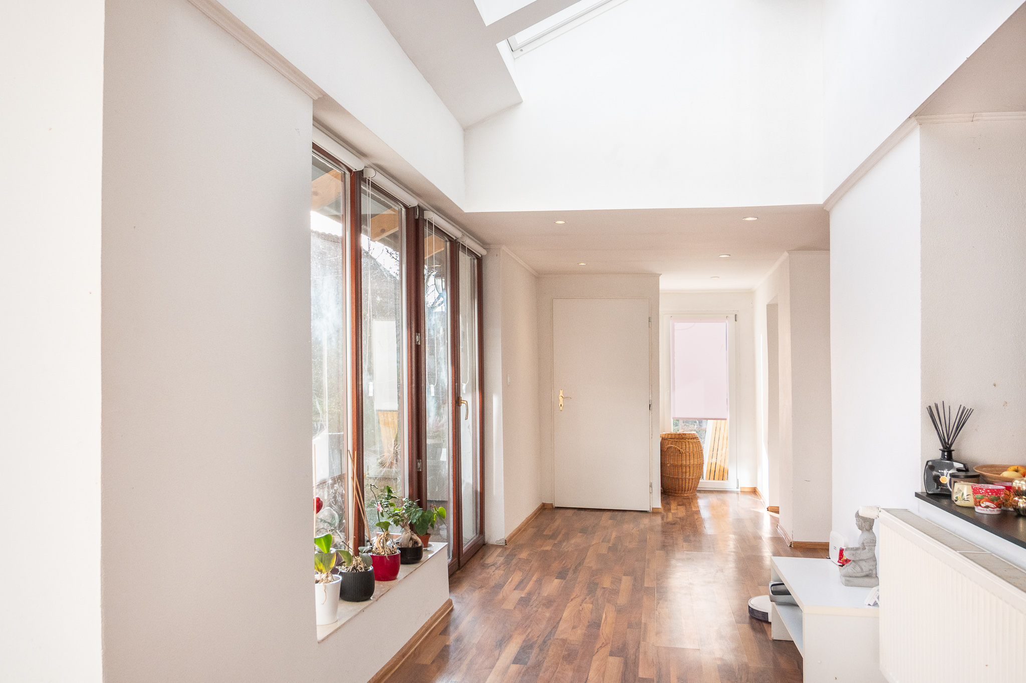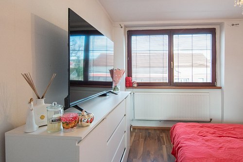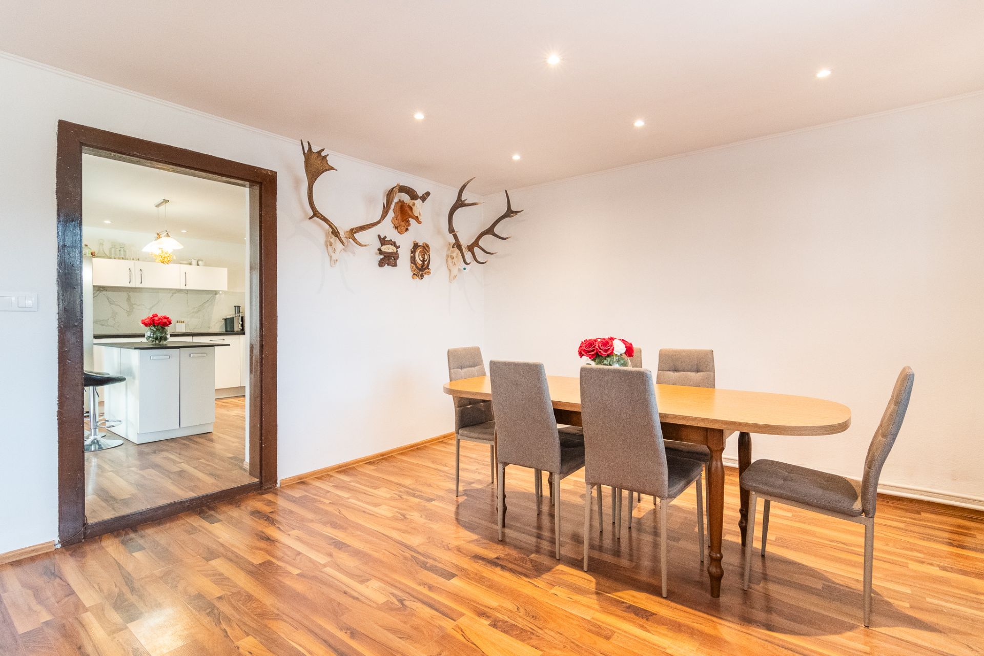 Dom bol daný do užívania v roku 1972 a prešiel rozsiahlejšími úpravami, ktoré ho pripravili na okamžité nasťahovanie. Ponúka veľmi šikovne riešenú dispozíciu: vstup tvorí veľká svetlá chodba presvetlená strešnými oknami, z ktorej je priamy vstup na vonkajšiu terasu s príjemným posedením. Na prízemí sa nachádza priestranný vstupný priestor, izba, kuchyňa s prechodom do obývacej miestnosti, kúpeľňa, samostatný šatník alebo odkladacia miestnosť a dve ďalšie izby orientované smerom do dvora. Hlavné obytné miestnosti sú situované na juhozápad a juhovýchod, čo zabezpečuje dostatok denného svetla počas celého dňa.