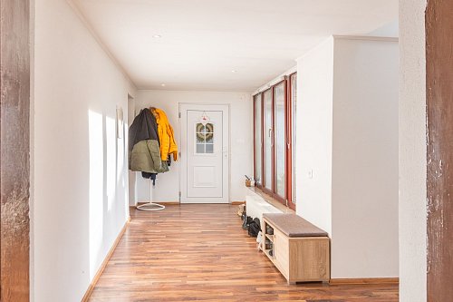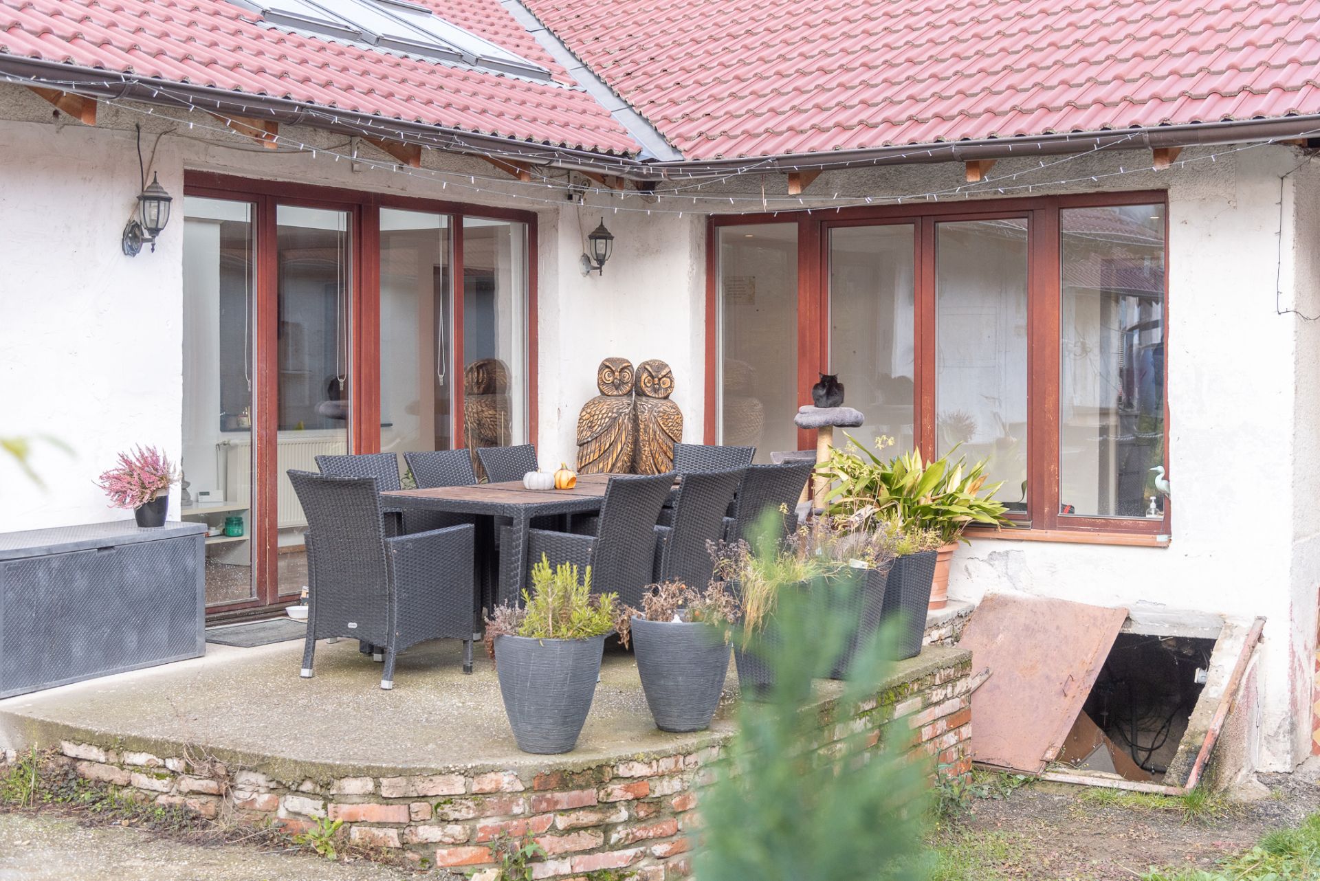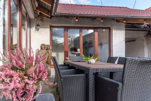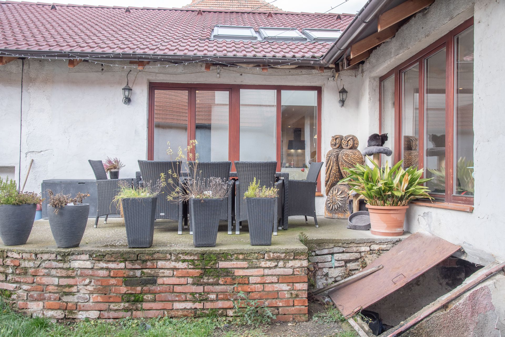 Na dvore sa nachádza hospodárska budova, veľkorysý slnečný pozemok poskytuje priestor pre oddych, záhradu či ďalšie využitie podľa predstáv nového majiteľa. Parkovanie je bezproblémové priamo pred domom alebo vo dvore cez podbránie.