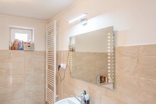 Dom je napojený na elektrinu, plyn, kanalizáciu a vodu zo studne. V obci je však už zrealizovaný nový rozvod obecnej vody, takže dom je možné pripojiť na verejný vodovod. Nehnuteľnosť prešla rekonštrukciou rozvodov vody, elektriny a odpadu, má nové plastové okná a dvere, nové podlahy, zrekonštruovanú kuchyňu aj kúpeľňu. Dom je čiastočne podsklepený, vykurovanie je zabezpečené plynovým kotlom. Z exteriéru je dom zateplený, má novú fasádu aj novú strechu.