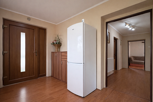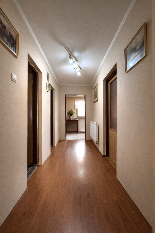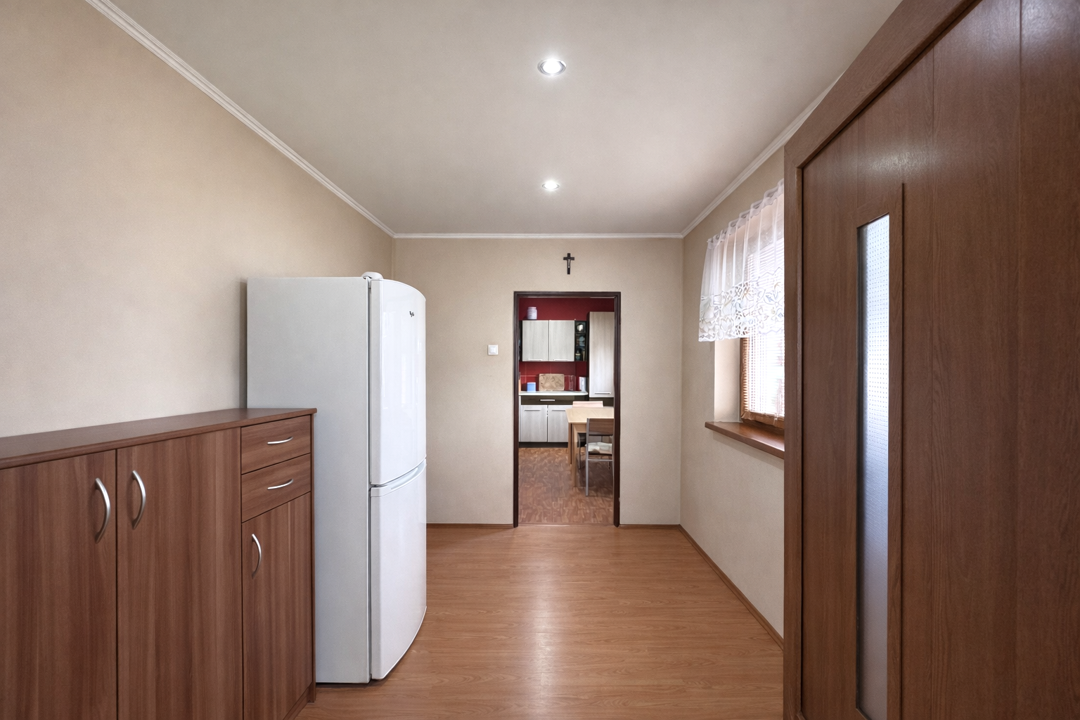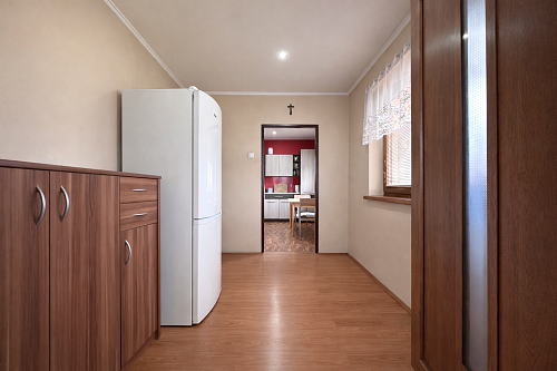 Dispozične pozostáva zo vstupného priestoru, kuchyne, obývacej izby, spálne, detskej izby, priestrannej kúpeľne s vaňou, umývadlom a WC, komory s výlezom na povalu.