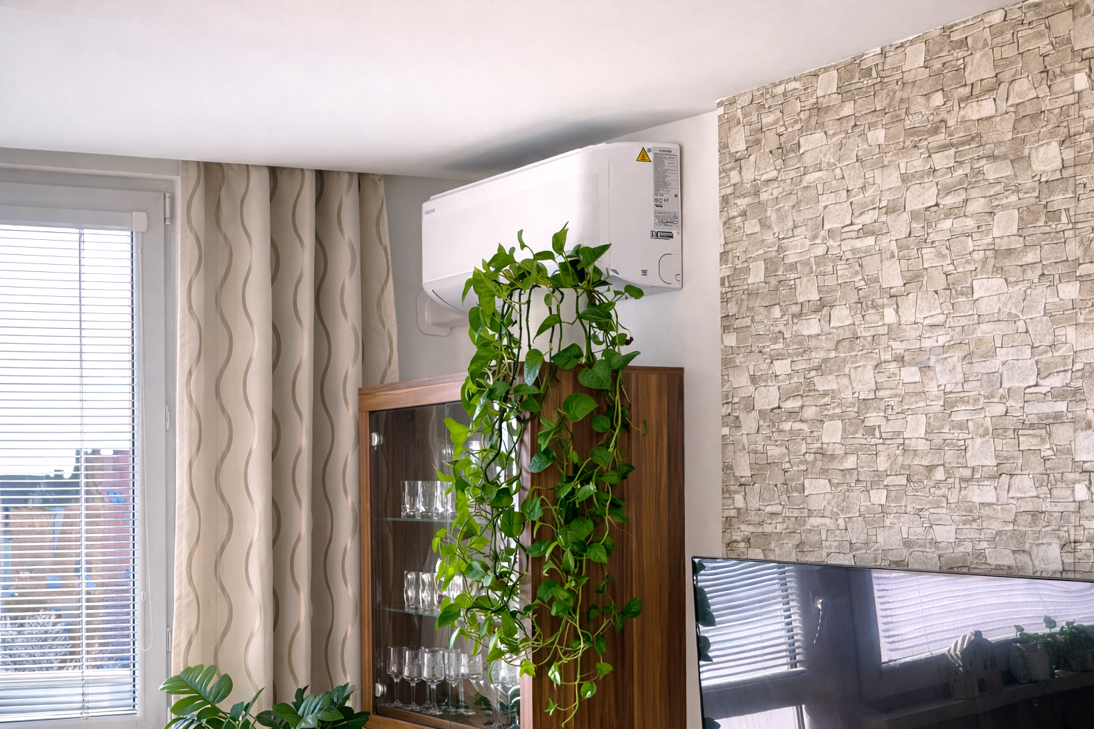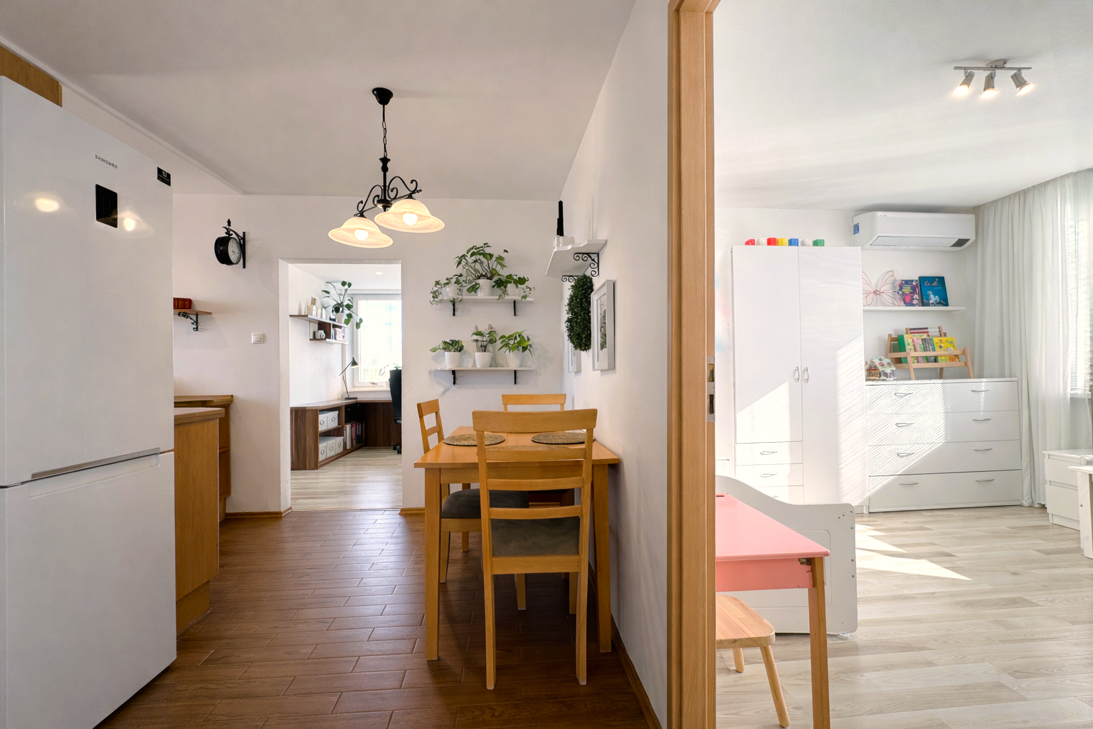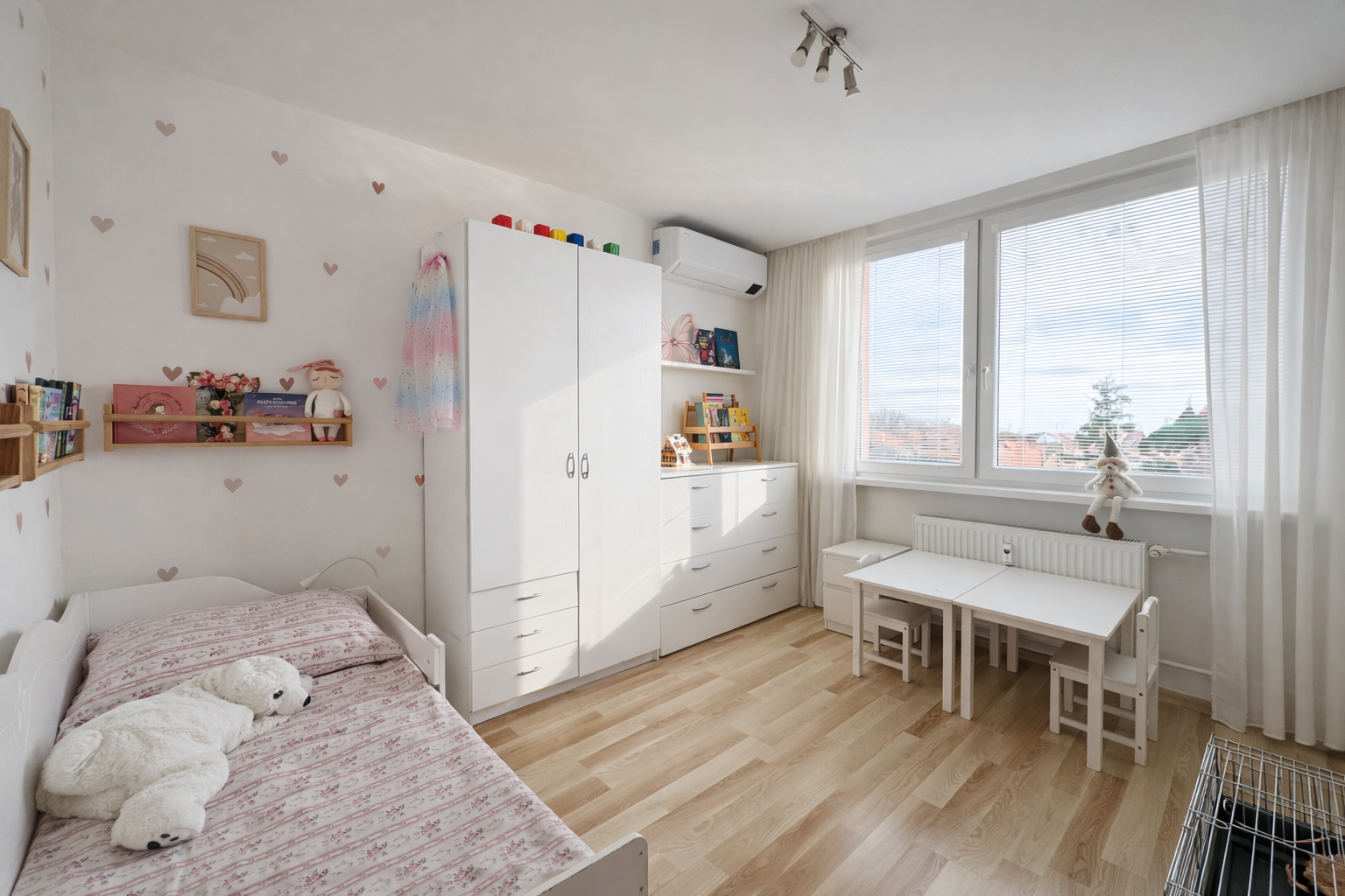 Komfort bývania zvyšuje klimatizácia Samsung Wind-Free AVANT (inštalovaná v roku 2020) s dvomi vnútornými jednotkami (obývacia izba a detská izba), ako aj optický internet.