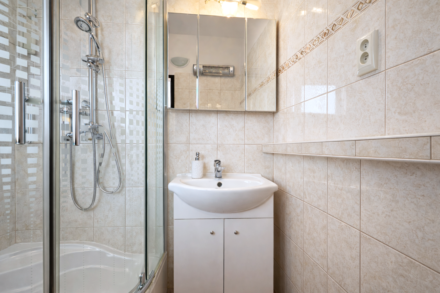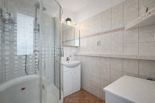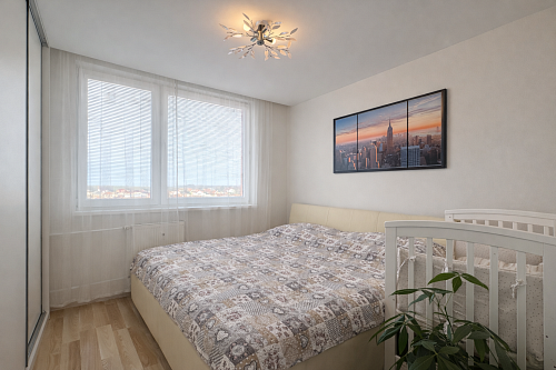 Nočnú časť tvorí spálňa (9,66 m²) a ďalšia izba (11,82 m²). Byt disponuje murovaným jadrom, kúpeľňou so sprchovým kútom (2,39 m²) a samostatným WC (1,02 m²). Veľkou výhodou je aj komora priamo v byte (2,04 m²), ktorá poskytuje praktický úložný priestor. K bytu prislúcha aj pivnica.
