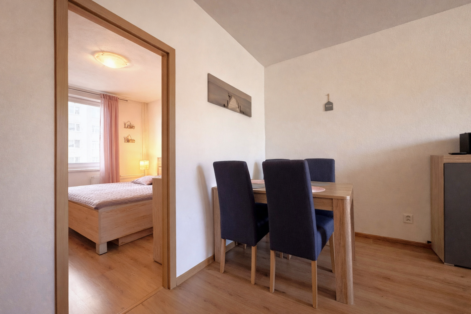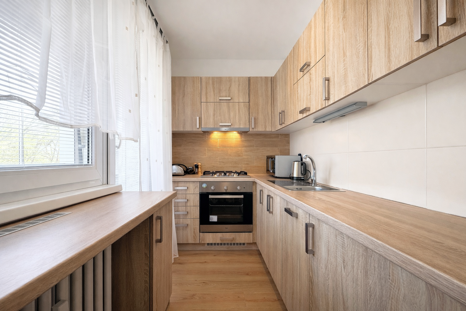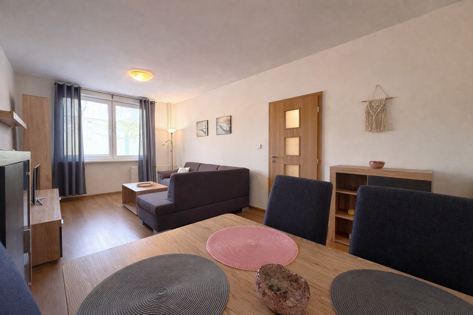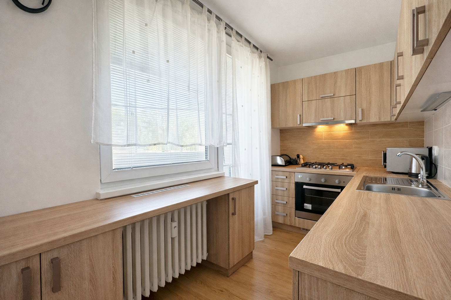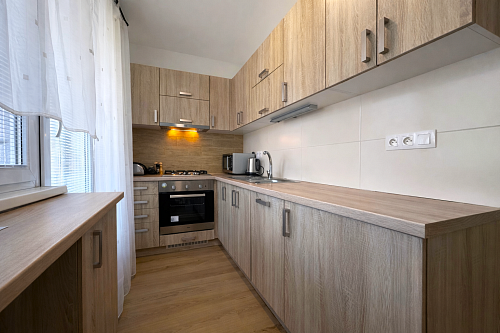 Byt sa predáva kompletne zariadený kvalitným nábytkom aj spotrebičmi, takže stačí si priniesť len osobné veci a môžete okamžite bývať.
