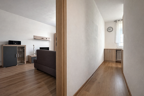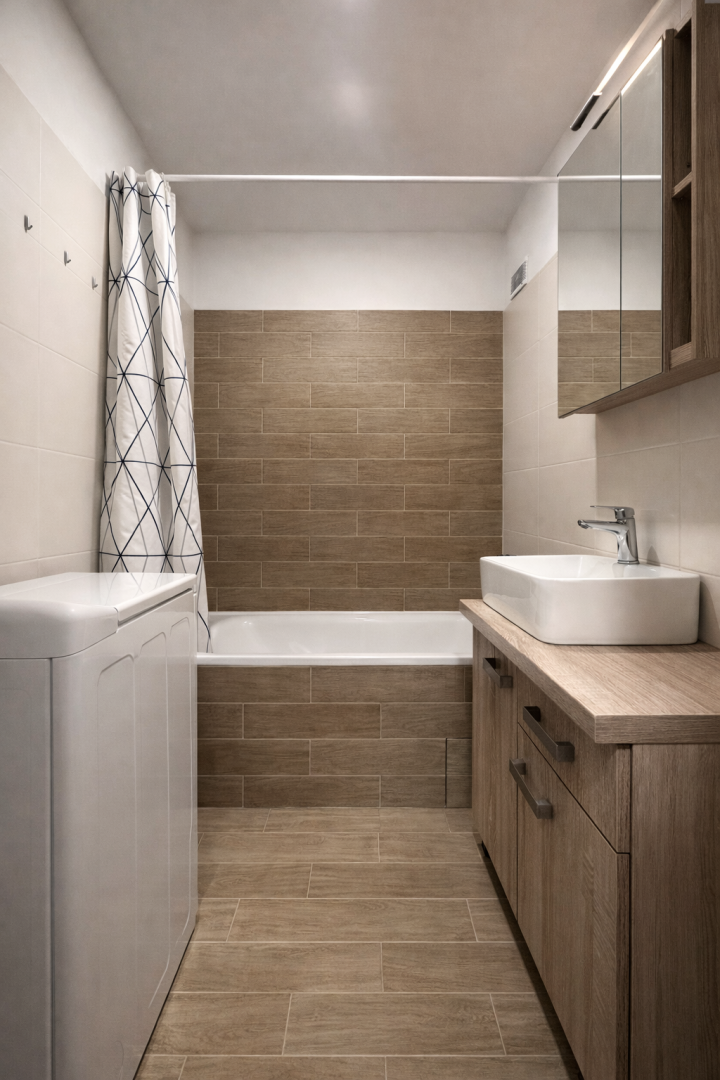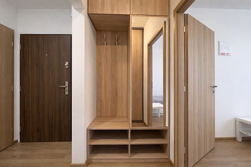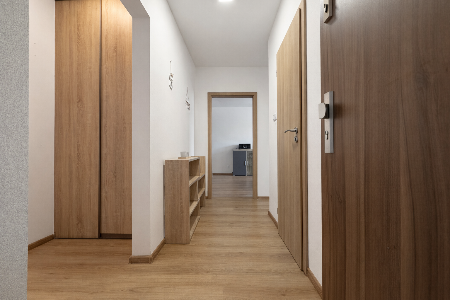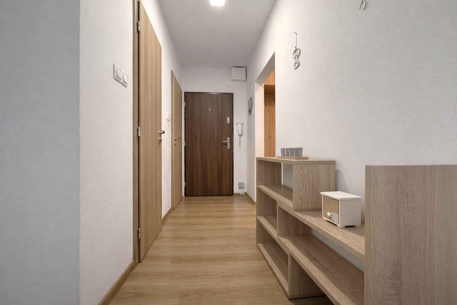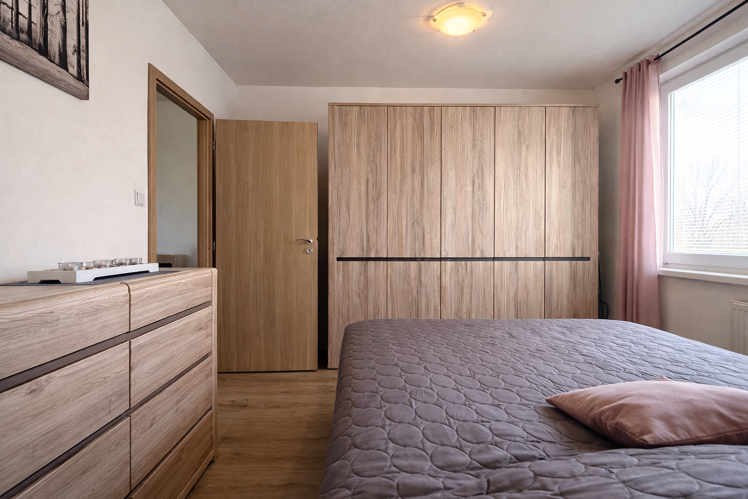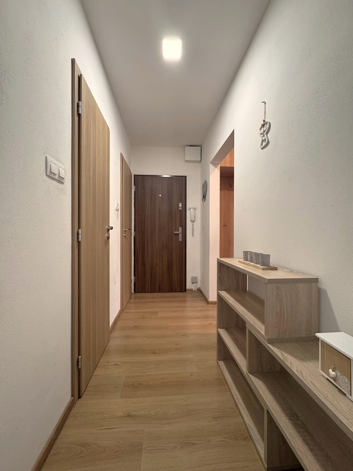 Byt s výmerou 66 m² pôsobí veľmi príjemne a teplo. Všetok nábytok je v jednotnom dekore a farebných odtieňoch, čo vytvára pocit harmónie a čistoty. Každý priestor má svoj účel a pôsobí premyslene – od vstupu až po posledný detail.