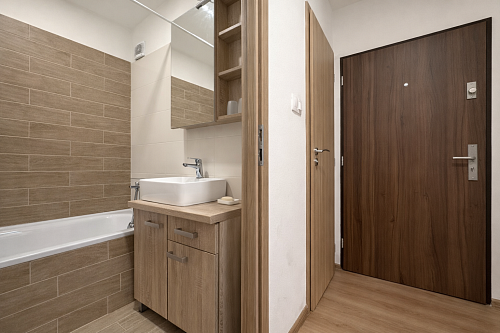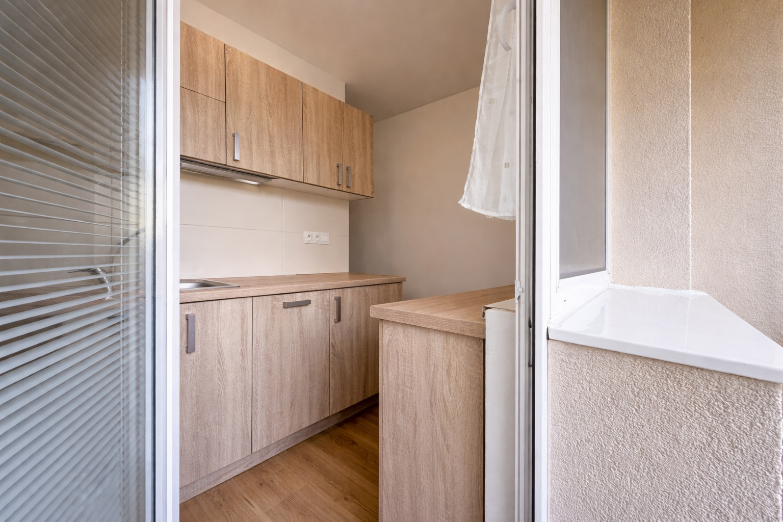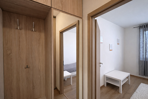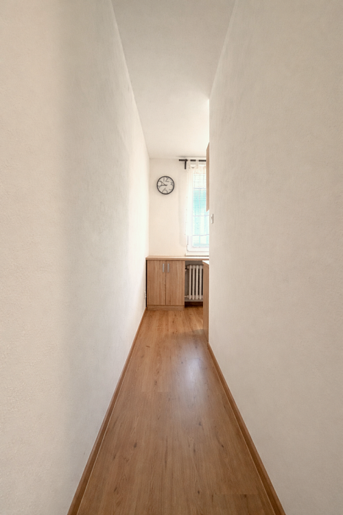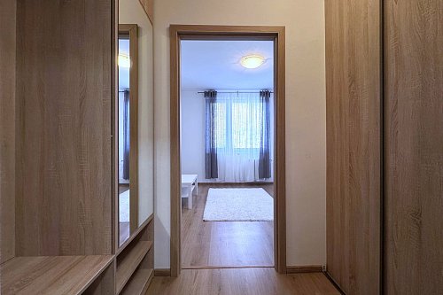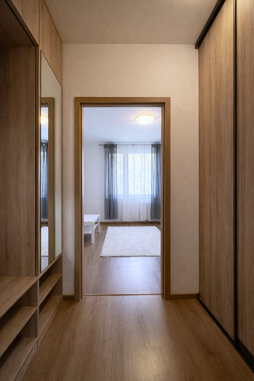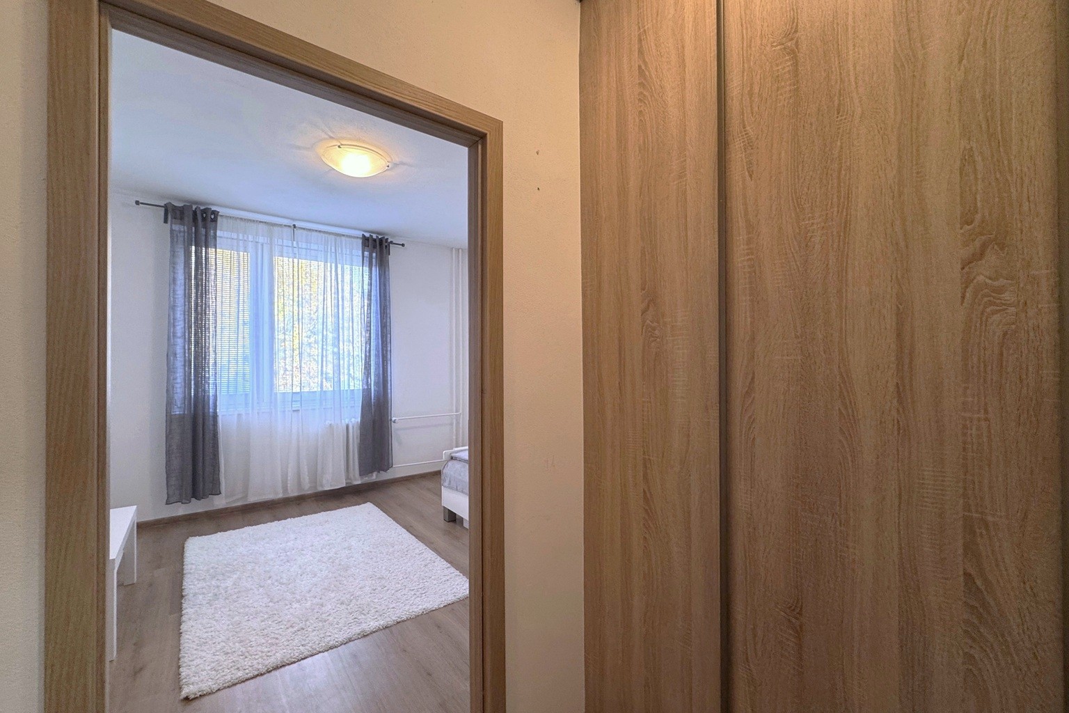 Vo vstupnej chodbe sa nachádza praktický úložný priestor oddelený posuvnými dverami, spálňa ponúka veľkú vstavanú skriňu, kuchyňa je taktiež s množstvom úložného miesta, z kuchyne vedie vstup na presklený balkón orientovaný do tichého vnútrobloku, obývačka aj balkón sú orientované na detské ihrisko, ktoré dotvára pokojnú atmosféru, taktiež aj pred hlavným vchodom je detské ihrisko s množstvom zelene.
